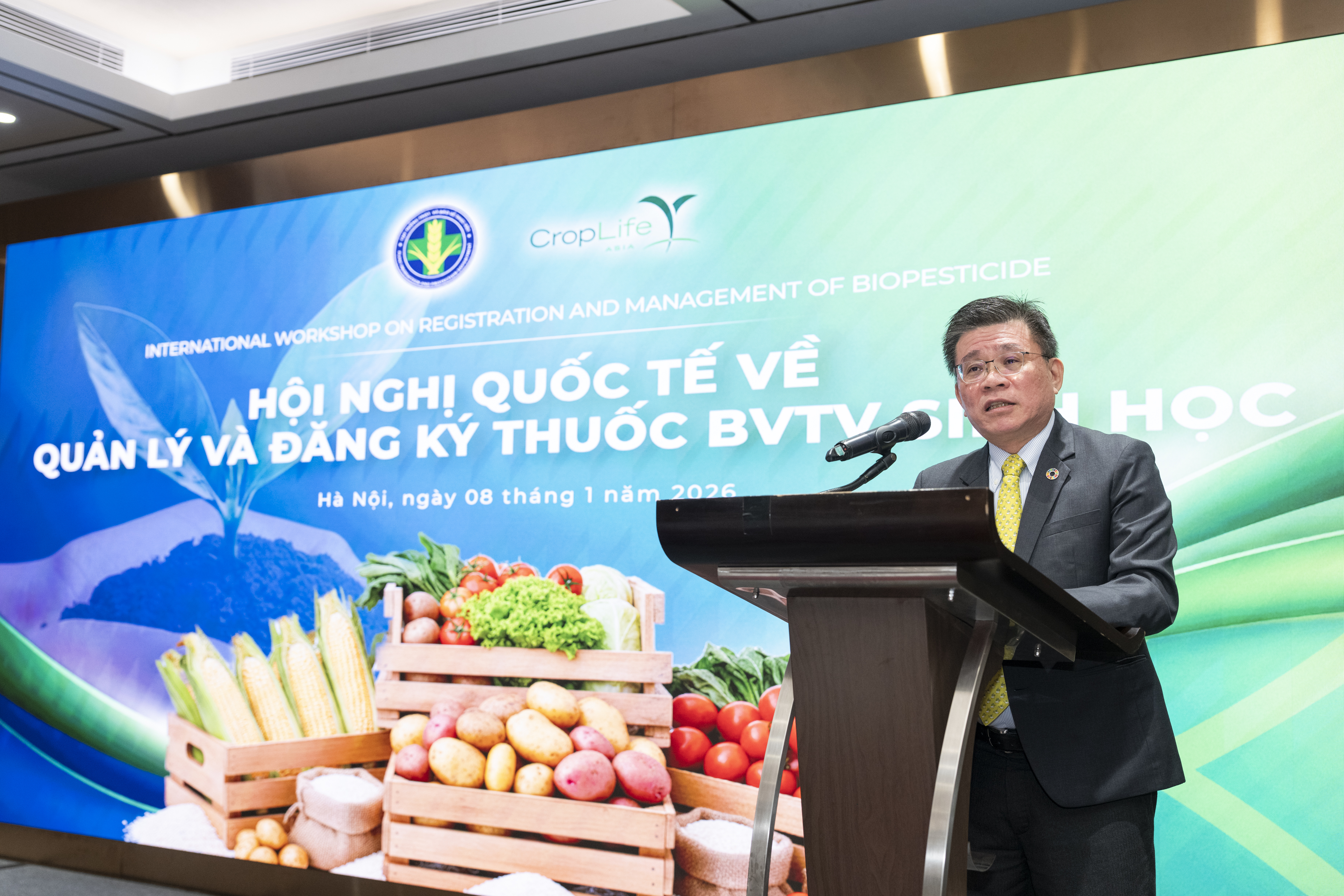 Tiếp nối kết quả và tinh thần đồng thuận đạt được đó, ngày 08/01, Cục Trồng trọt và Bảo vệ thực vật phối hợp với Hiệp hội CropLife Châu Á tiếp tục tổ chức “Hội nghị Quốc tế về Quản lý và Đăng ký Thuốc Bảo vệ Thực vật Sinh học”. Bên cạnh các chuyên gia quốc tế, hội nghị còn có sự tham dự của đại diện các cơ quan quản lý, viện nghiên cứu, hiệp hội – ngành hàng, doanh nghiệp và cơ quan báo chí trong nước. Mục tiêu của hội nghị là làm sâu sắc hơn các thảo luận liên quan đến định hướng hoàn thiện khung pháp lý của Việt Nam theo các nguyên tắc hài hòa chung của ASEAN, đồng thời phù hợp với “Đề án phát triển sản xuất và sử dụng thuốc BVTV sinh học đến năm 2030, tầm nhìn đến năm 2050” và ưu tiên phát triển nông nghiệp bền vững của Chính phủ.