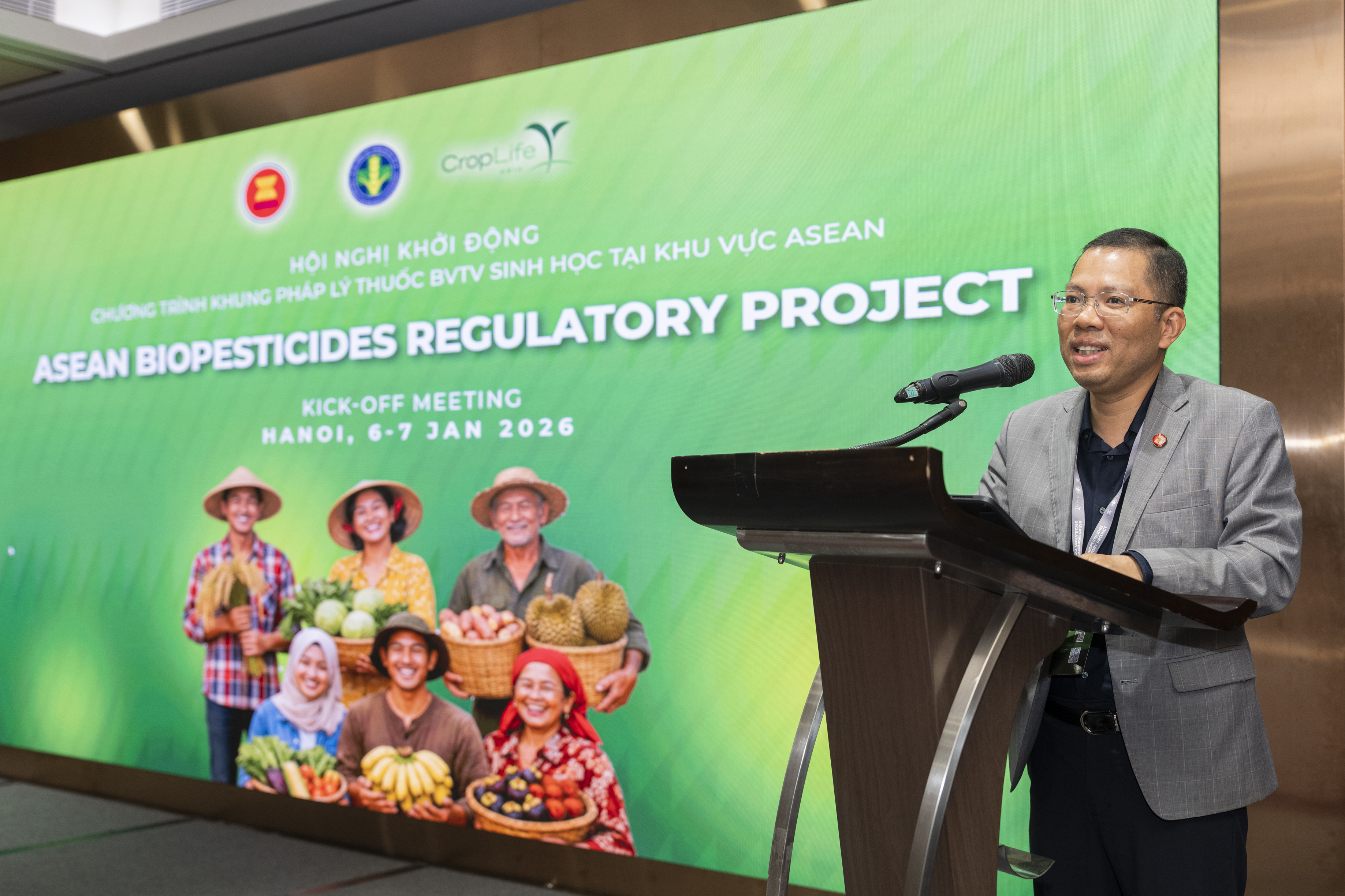 Mở đầu chuỗi sự kiện là Hội nghị khởi động Chương trình Khung quản lý thuốc BVTV sinh học tại khu vực ASEAN, diễn ra trong hai ngày 06–07/01/2026, do Nhóm công tác ABETF của ASEAN và CropLife Châu Á phối hợp cùng Cục Trồng trọt và Bảo vệ thực vật tổ chức. Sự kiện đã quy tụ đông đảo đại biểu đến từ cơ quan quản lý thuốc BVTV tại nước thành viên ASEAN và chuyên gia quốc tế đánh dấu một diễn đàn hợp tác khu vực có ý nghĩa quan trọng nhằm thúc đẩy các giải pháp BVTV sinh học an toàn và bền vững. Đây là hội nghị quan trọng đánh dấu bước khởi động chính thức của Chương trình, hướng tới mục tiêu xây dựng và hài hòa hóa hệ thống quản lý thuốc BVTV sinh học trong khu vực trên nền tảng khoa học, phù hợp với thông lệ quốc tế, đồng thời đảm bảo tính linh hoạt để đáp ứng điều kiện thực tiễn của từng quốc gia thành viên.